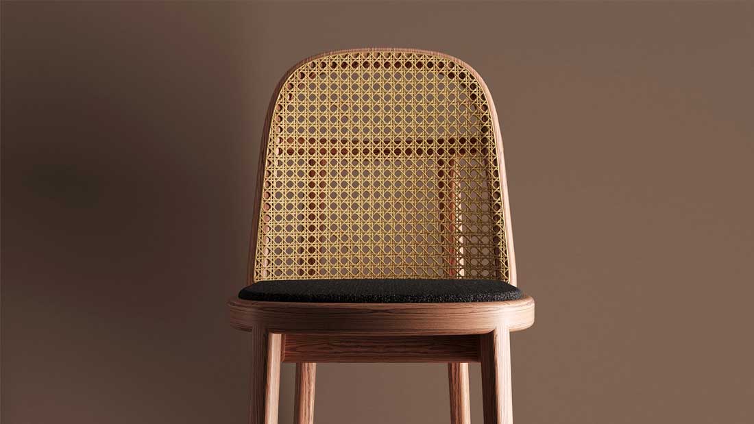 From the front, the horizontal bar—gently framed by the back frame—appears subtly through the woven rattan backrest, creating a layered visual effect that reveals the craftsmanship behind the design.